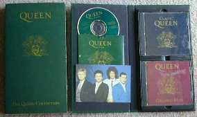 ![]() | これはちょっと珍しいかも。フレディの死後、米ハリウッドレコード編集で出た『Classic Queen』と『Greatest Hits』の2枚をセットにし、50分にも及ぶインタビューと「Thank God It’s Christmas」とを収めたCDとポストカードを付けたお徳用セットです。六本木のWAVEで5000円ちょっとで買ったと思います。インタビューはもちろん内容分かりませんが、『ミラクル』発表直後のもののようです。 |