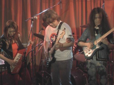 | そしていよいよ、もしかすると、いや、もしかしなくても、この日一番前評判の高かったバンド詠時感、満を持しての登場である。もちろん、名前の通り、エイジアのコピバンだ。今回、はるばる名古屋からやってきた。感謝。で、さすがに前評判を裏切る事のない堂々とした演奏だった。うん、完全尼嗜好負けたかも(爆) 期待の大きさを反映してか、持ち時間も長め、照明もちょっと雰囲気違ってた(ひがむなって...笑)。いやしかし、お見事でした。これ以上言いようがないです。決して、美人のキーボード奏者に目が眩んだのではありません(爆) |