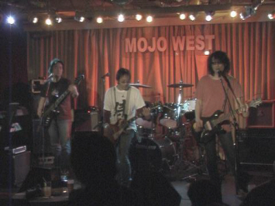 | さて、しんがりに控えしは、この日唯一のオリジナルメロコアバンク系バンド、偏脳侍でござる。偏脳侍の“じ”は決して“寺”ではないので、よろしくお願いつかまつる。産業とは、やや(かなり..笑)傾向が違うでござるが、非常に楽しくノリノリのステージだったのでござる。ドラマーがおらず、打ち込みでやってたのが、大変残念でござった。音的には、正直申すと拙者の趣味とは違うのであるが、実に良いバンドなので、また機会があればライブに馳せ参じたい、と思った次第でござる。打ち上げで、メンバーの方々に名刺まで頂いて、かたじけのうござる。 |