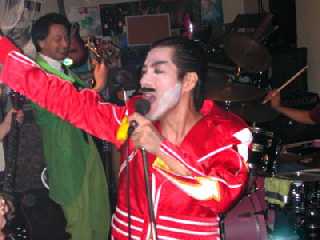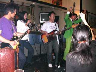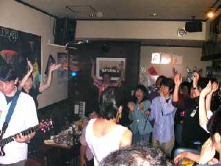 | 去る9月4日(土)及び5日(日)の2日間、埼玉県は蕨市にあるHONEYFLASHで行われたクイーン・セッション2Daysに参加してきたのである。良い子の諸君は、何故この日にクイーン・セッションが開催されたのか、お分かりですね。そう、9月5日はフレディ・マーキュリーの誕生日だからですよ。そのフレディの誕生日(及びその前夜)に、楽器を担いだミュージシャンにしてクイーン・ファンが集まって、クイーンの名曲をセッションしながら、フレディを偲びつつ楽しく盛り上がりましょう、というのがこのイベントの主旨なのである(はず)。 ご存知ない方も多いと思うので、簡単に説明させて頂くと、HONEYFLASHとはJR京浜東北線蕨駅から徒歩10分弱くらいの所にあるLIVE DISCOTHEQUEで、カッコいいロックが聴けて美味しいお酒が飲めて、週末にはセッションなども開催されるという、ロック好きにはたまらないお店なのである。で、目玉のセッション、これまではプログレ・セッションとかクラシック・ロック・セッション等が行われ、多くの愛好家たちが至福の一時を過ごしていたそうだが、この度HONEYFLASHの常連さんでもあるJun Greenさん提唱による、クイーン・セッションが開催の運びとなった訳だ。そして、彼のご好意により、忍者さんと僕の二人も関西出張組として、恐れ多くもこのクイーン・セッションに参加させて貰う事になったのである。 それでは、2夜に渡り非常に盛り上がった“ハニフラ・クイーン・セッション”の模様を、参加者の立場からレポートさせて頂きます(笑) 9/4 セッション・スタートは18時からだけど、一時間前から参加者が集まり、Junさんの仕切りでリハが始まる。そして、時間となり、Yukariさんによる“ウェンブリー風”開会宣言&乾杯。 その後一人づつ自己紹介。そしたら忍者さんがまたやってくれました。「僕はクイーンのファンではありません」続けて「フォリナーのファンです」 これには店内大ウケ。この一言が、また別のセッション企画にまで発展してしまうとは、本人は予期していたのだろうか?(笑) で、いよいよもって、セッションの始まりだ。 1.It's Late usagiさん=Vo、 忍者さん=G、 じゆう太さん=Bs、 MFCオーナー=Dr 、コーラス=全員(笑) しょっぱなから自分のエントリー曲だったのは良かったのか悪かったのか(笑) ま、緊張をほぐすには良かったけど。でも、この曲が始まる時点で一杯目のビールが空になりかかっていた...ずっと心配していたエンディング近くの短いドラムソロ、この時はまぁ上手くいった、と思う(爆) 2.Orge Battle Kaoruさん=Vo、 忍者さん=G、Jun Greenさん=Bs、 MFCオーナー=Ds、コーラス=やっぱり全員(笑) KaoruさんとはMFC開設時からの知り合いだけど、お目にかかるのはこの日が初めて。でも、テレビ等で拝見してたんで、初めてって感じはしなかった。イメージと違いますね、と言われてしまった。どういうイメージを持っていたのか、この時は聞きそびれたけど、もっとロケンローラー風外見だと思っていたそうな(笑) ま、この曲、昔からやりたかっただけに実に気分良かった。端で見てたらどうか分からないけど、自分としてはかなりノッてきたぞ、って感じ(爆) Kaoruさんも熱唱でした。 3.Crazy Little Thing Called Love Yukariさん=Vo&アコギ、ボス様=リードG、忍者さん=サイドG、Jun Greenさん=Bs、MFCオーナー=Ds、コーラス=こうなりゃ全員(笑) Yukariさん、ソロでのライブデビューなんである。ご一緒出来て光栄です(笑) 別に緊張してるようには見えなかったけど、ご本人はやっぱ緊張してたらしい。背が高いのでアコギがとても似合ってカッコ良かったです。ちなみに、この日抱えていたアコギ、なんとJunさんのブレゼントらしい。う〜む、太っ腹(爆) 4.Brighton Rock タマオさん=Vo、ボス様=G、あけさん=Bs、MFCオーナー=Ds、コーラス=さらに盛り上がって全員(笑) カウンターの中でギターを弾くハニフラのボス様(Junさん曰く“キッチンギタリスト”)のプレイが炸裂した一曲。店内は大盛り上がり。クイーンはあまり得意じゃない、と言いながらこれだけ弾いてしまうとはさすが元プロ。素晴らしい演奏を聴かせて頂きました。冒頭にSEを流すという小技もGood! 5.Sleeping On The Sidewalk じゆう太さん=Vo&Bs、クッキーさん=G、ポテチンさん=Ds、コーラス=シブく全員(笑) う〜む、なんてシブい選曲なんだ(爆) しかも、オリジナル通りのスリーピースでやってしまうなんて...(涙) このクッキーさんのブライアンセット、すなわちレッドスペシャルにVOXアンプにピック、実に見事にブライアンの音を再現してました。もちろん道具だけでなくテクニックも素晴らしいギタリストでしたよ。UKのコピーもなさるというじゆう太さんのボーカルもナイス! 6.Tie Your Mother Down 美穂さん=Vo、HARUKOさん=G、Jun Greenさん=Bs、サッキーさん=Ds、コーラス=当然の如く全員(笑) 女性ギタリストのHARUKOさん、ちょっと緊張してたかな。でも、こちらも長身でカッコ良かったです。本家のライブ定番曲で最高潮に盛り上がって、一旦休憩に(このペースで続い